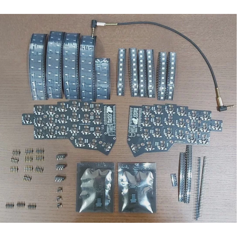 Платы 2шт, хотсвапы 44шт, диоды 44шт, сокеты для контроллера (40pin) 2шт, ножки для контроллера (5pin) 10шт, кнопки перезагрузки 2шт, гнезда для trs кабеля 2шт.